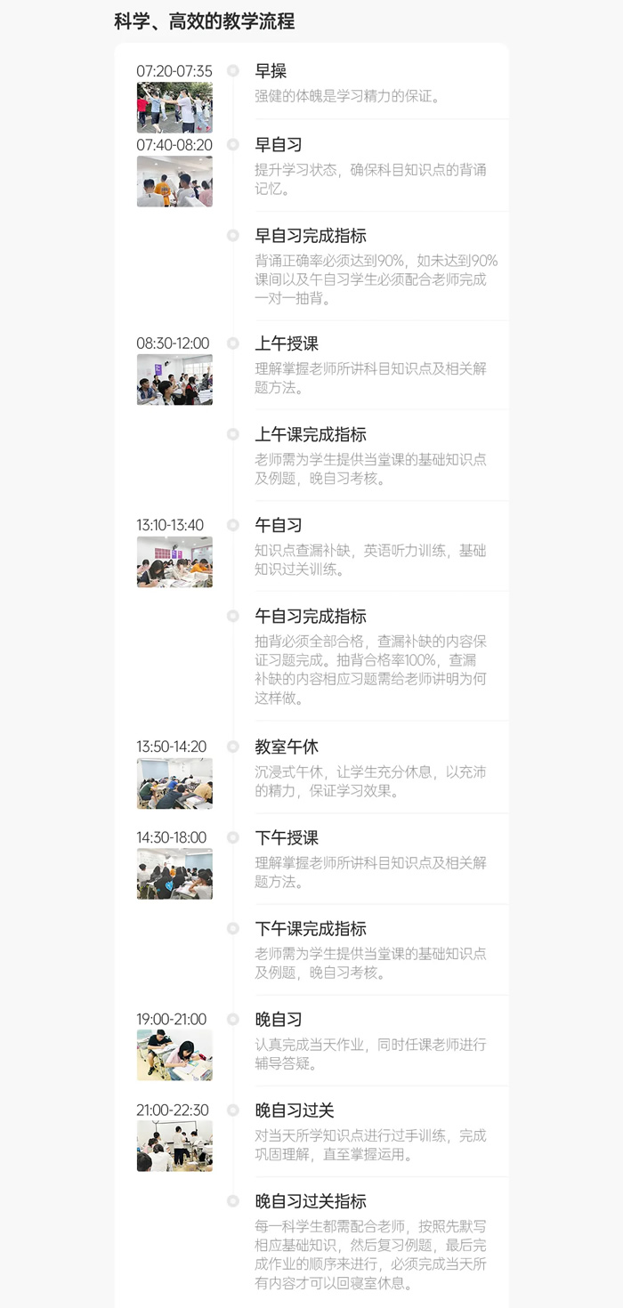 优秀班主任(一线带班经验)陪伴式教学,确保对学生的管理科学、高效。